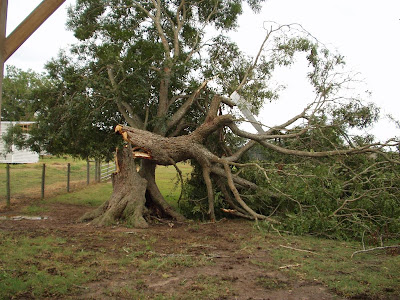 Then more change. Hurricane Ike happened to our Old Man of a Tree. The left half of the Pecan fork was twisted around and broke. If you look at the pic above, you can see that the tree forks. Well, that whole huge left half broke.